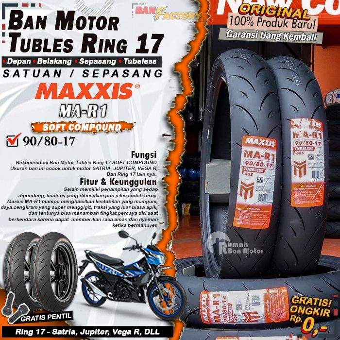 Ban Motor Tubles Maxxis MA-R1 Ring 17 Ban Tubles Motor Depan Belakang Vixion Ninja Satria Ring 17