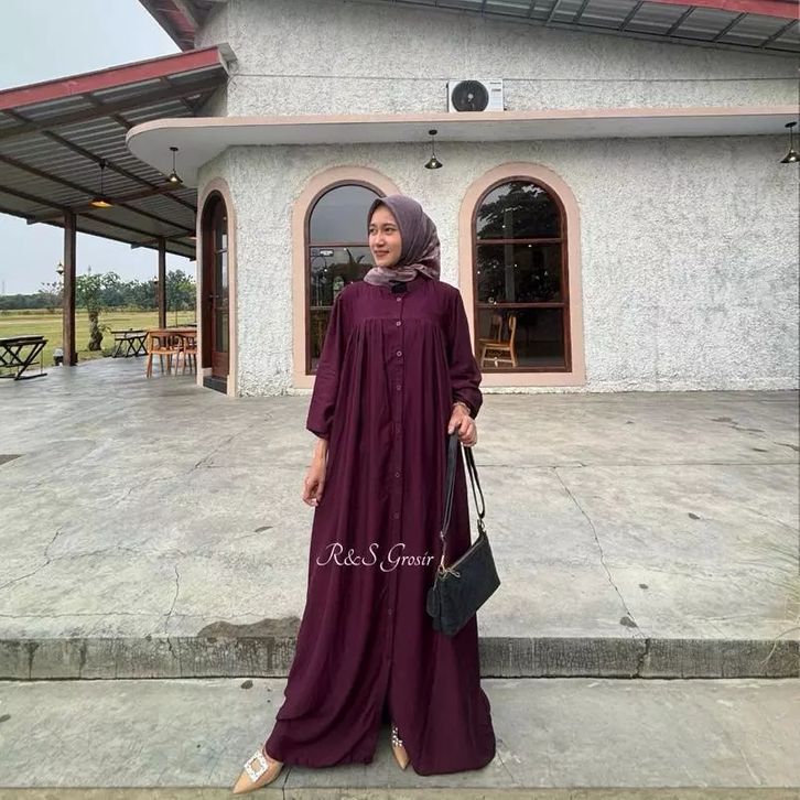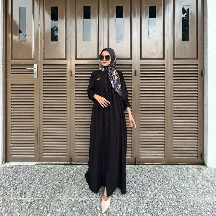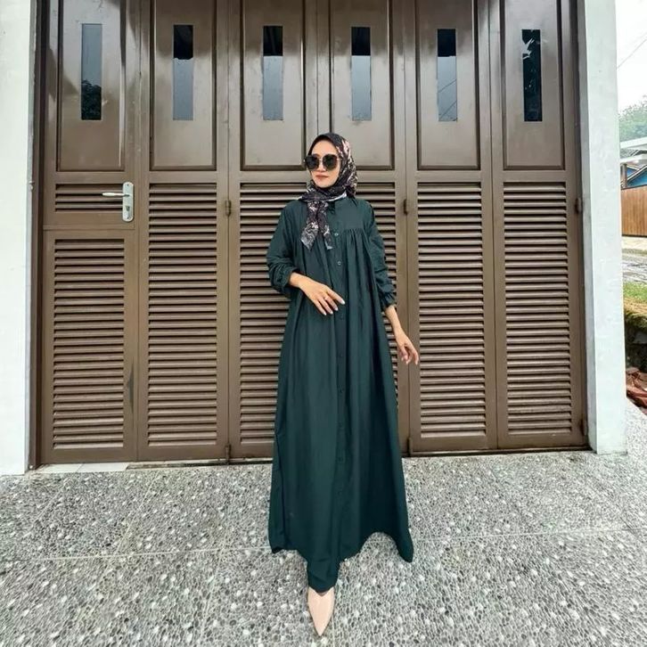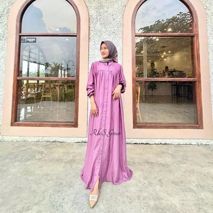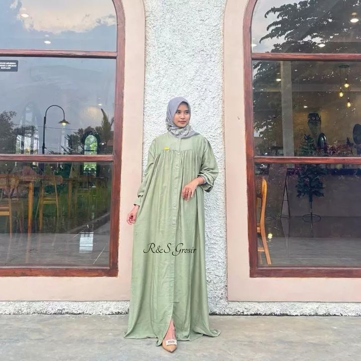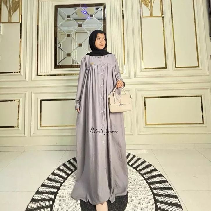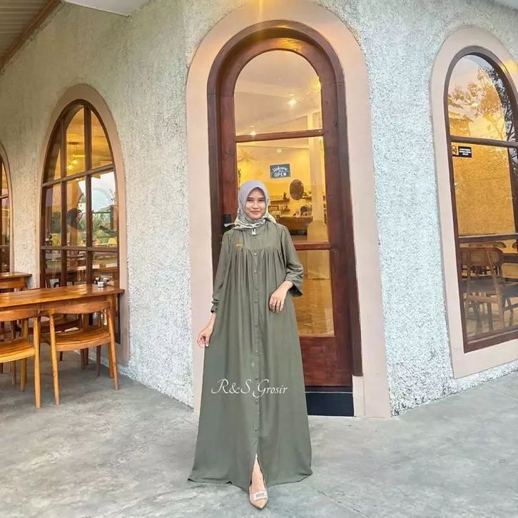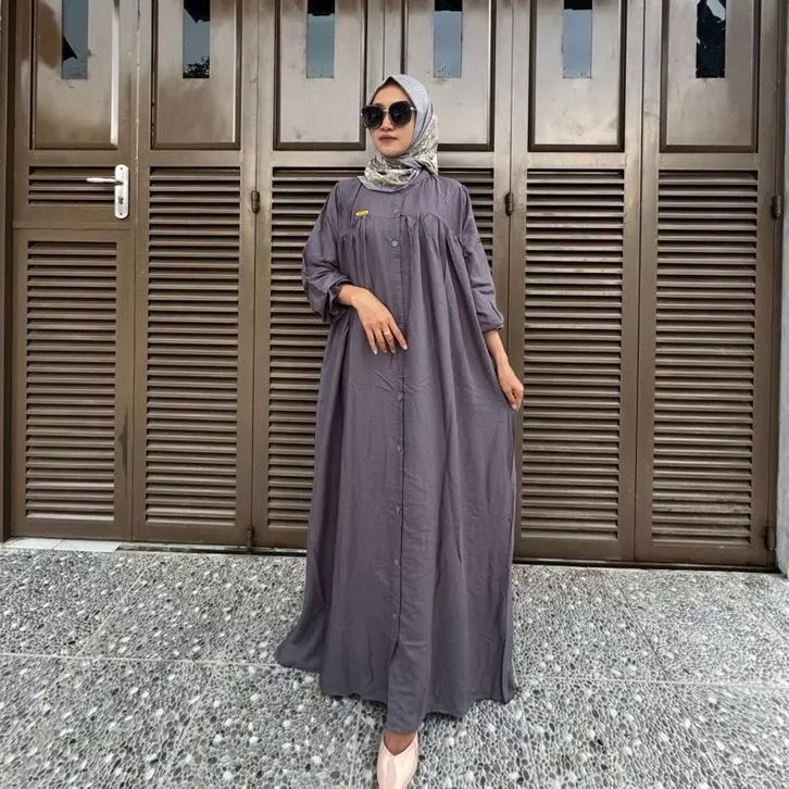 GAMIS CALISTA Lengan balon Bahan Rayon Twill High Quality dress Basic Muslim Syari Wanita Kancing