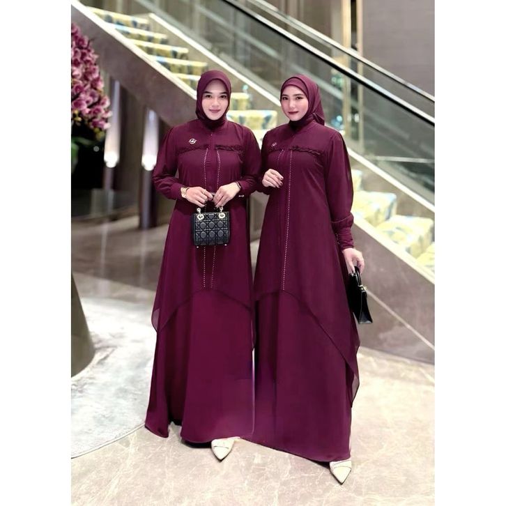 Gamis Pesta Mahogany Dress Lebaran 2026 Dress Gamis Fahana Simple Mewah Elegant Bahan Ceruty Premium