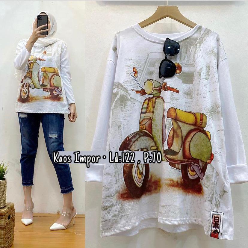 WS ATASAN WANITA TUNIK VESPA JAMAN DULU/KAOS FIT TO XL JUMBO/TOP BLOUSE KAOS WANITA JUMBO LENGAN PANJANG