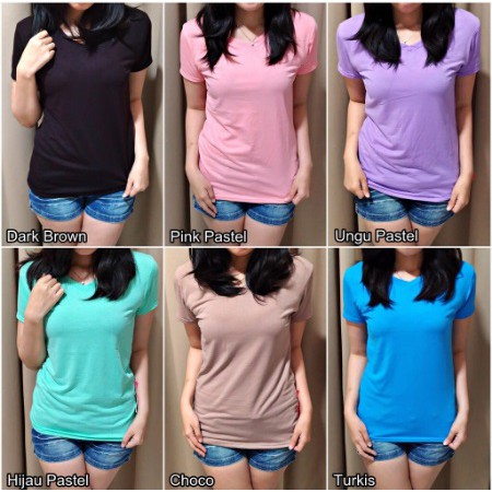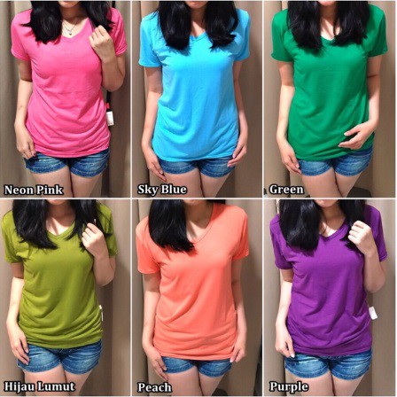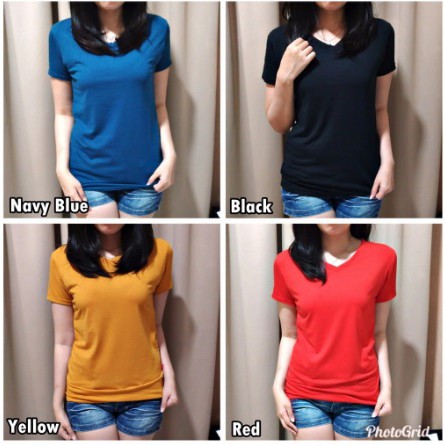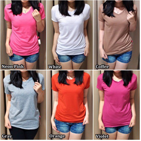 ModisFashion Kaos Wanita T shirt Polos Vneck Basic Spandex (L-XL)
