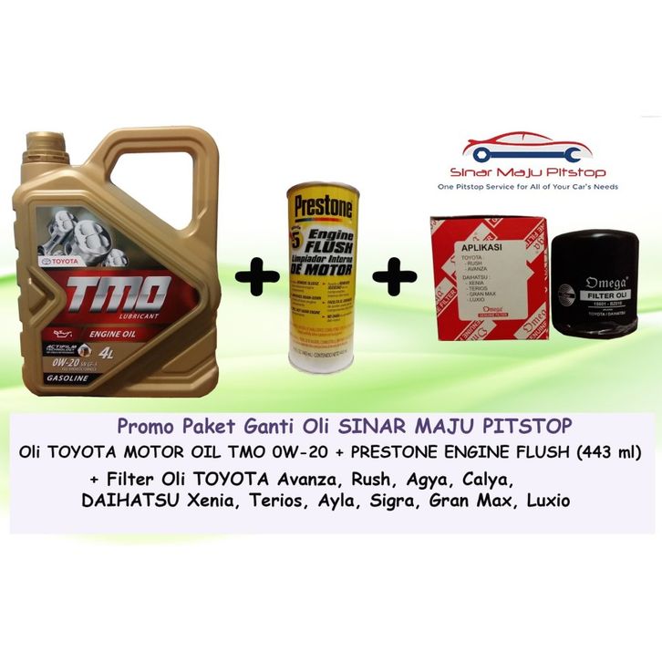 Paket Ganti Oli Mobil TOYOTA AVANZA & RUSH & AGYA & CALYA - TMO 0W-20 API SN 4 LITER & Filter & Engine Flush