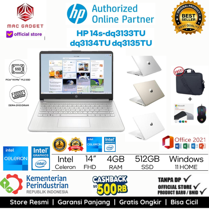 Official Store 🔥 Laptop HP 14s Celeron -dq3133tu/14s-dq3134tu/14s-dq3135tu N4500 512GB 14" Intel UHD W11 OHS RESMI