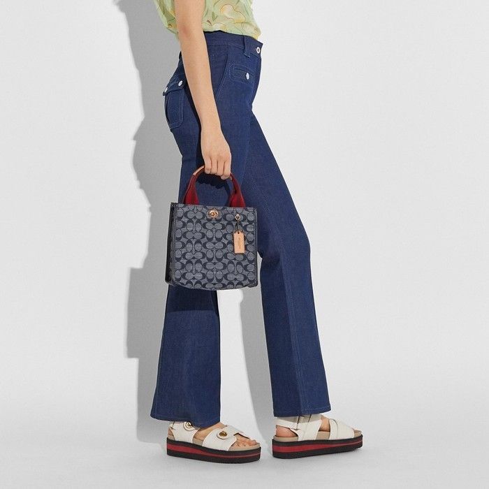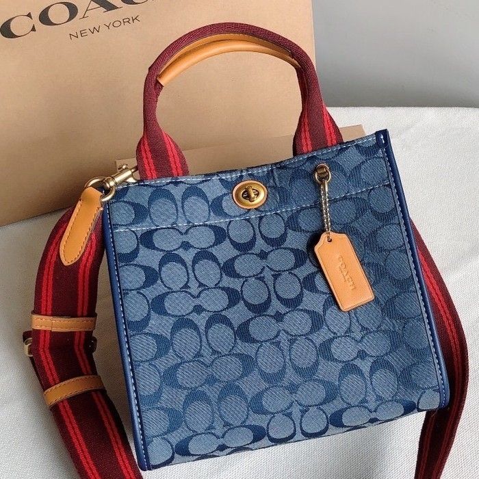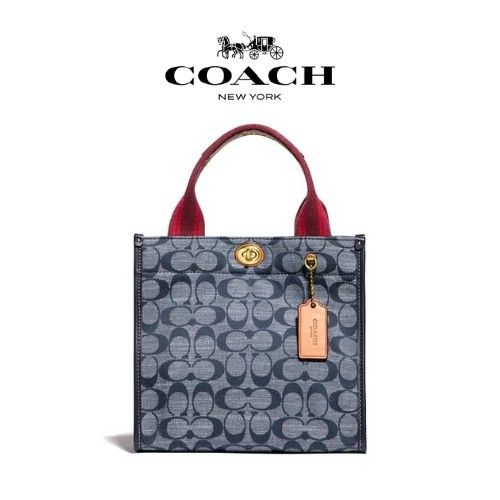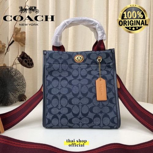 (100% ORIGINAL) Tas COACH Tote 22 In Signature Chambray Crossbody Bag