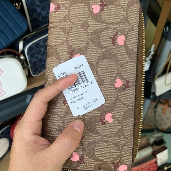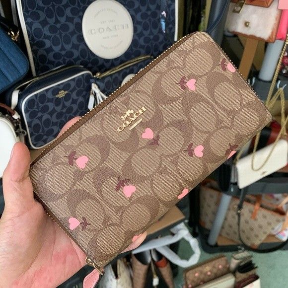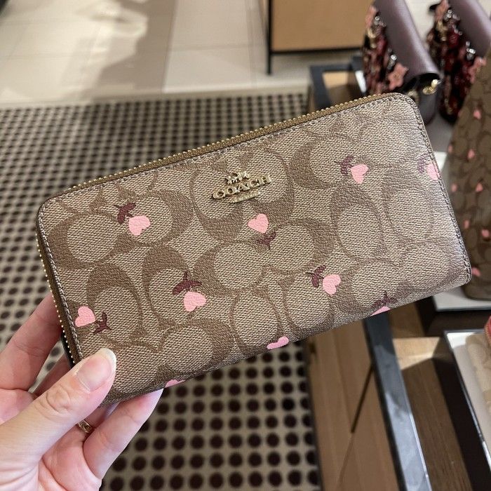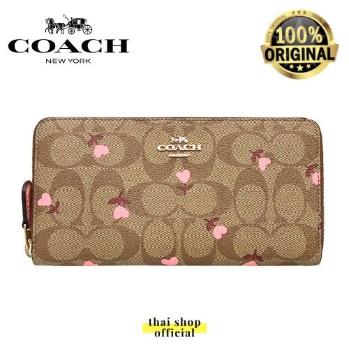 (100% ORIGINAL) COACH Accordion Zip Wallet With Floral Heart Print