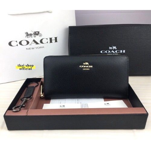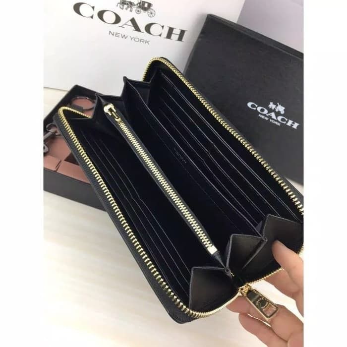 DOMPET COACH Accordion Zip Wallet Pebbled Leather Black