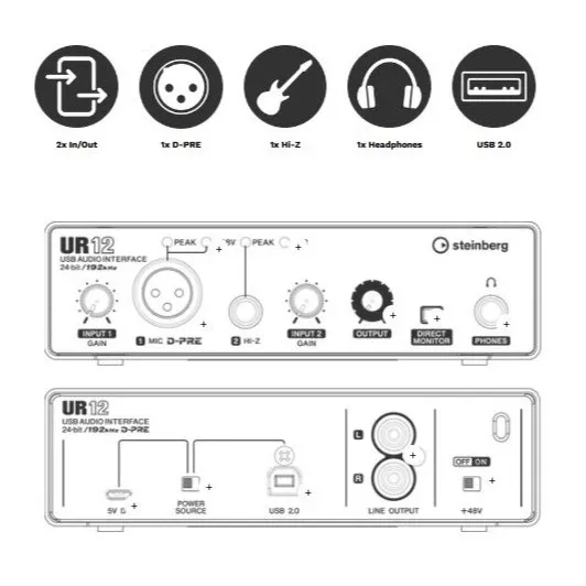 STEINBERG UR12 UR 12 2X2 USB AUDIO INTERFACE SOUNDCARD FOR RECORDING