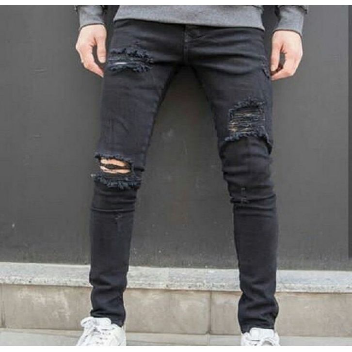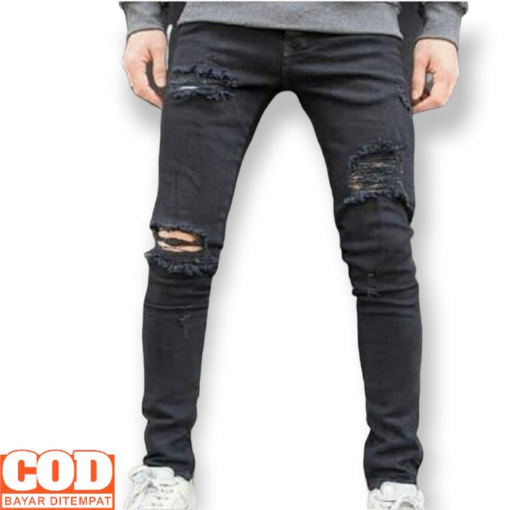 celana jeans cowok panjang sunmori sobek hitam pria celana panjang pria hitam 27-34