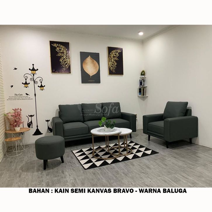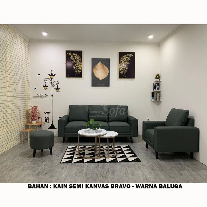 Sofa Ruang Tamu 31 Seater Fensi Jade Emerald Standart 17 + Stool + Meja Susun Marbel