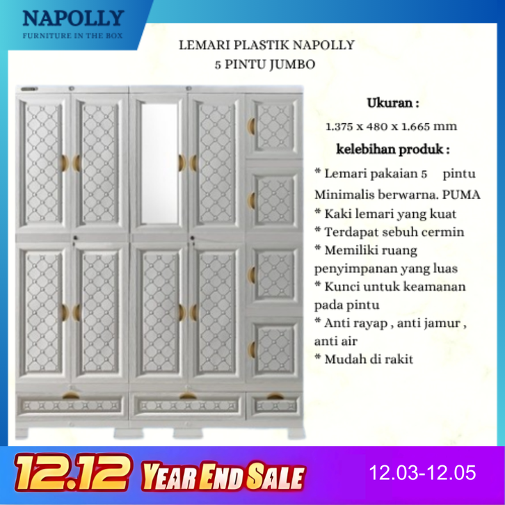 LEMARI PLASTIK 4 SUSUN JUMBO NAPOLLY 4 PINTU ORIGINAL GANTUNG KACA CERMIN KUNCI BARU PAKAIAN