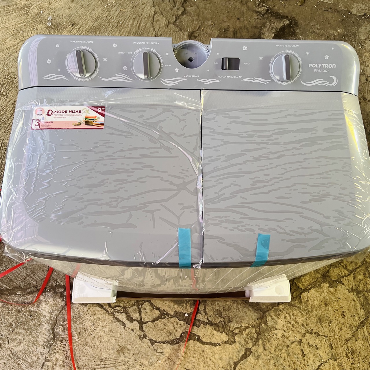 POLYTRON Mesin Cuci 9kg PWM9076 Original Garansi Resmi Twin Tub Washing Machine PWM-9076 Murah PWM 9076