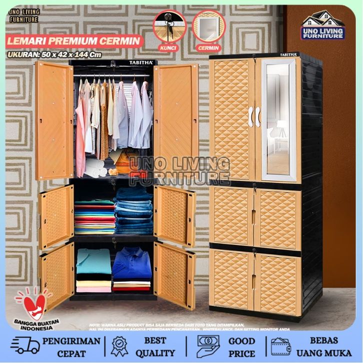 Lemari Plastik Keluarga Berkualitas 2024 Pakaian 4 Susun Jumbo Karakter Rak Gantung Napolly 3 Pintu Baju High Quality