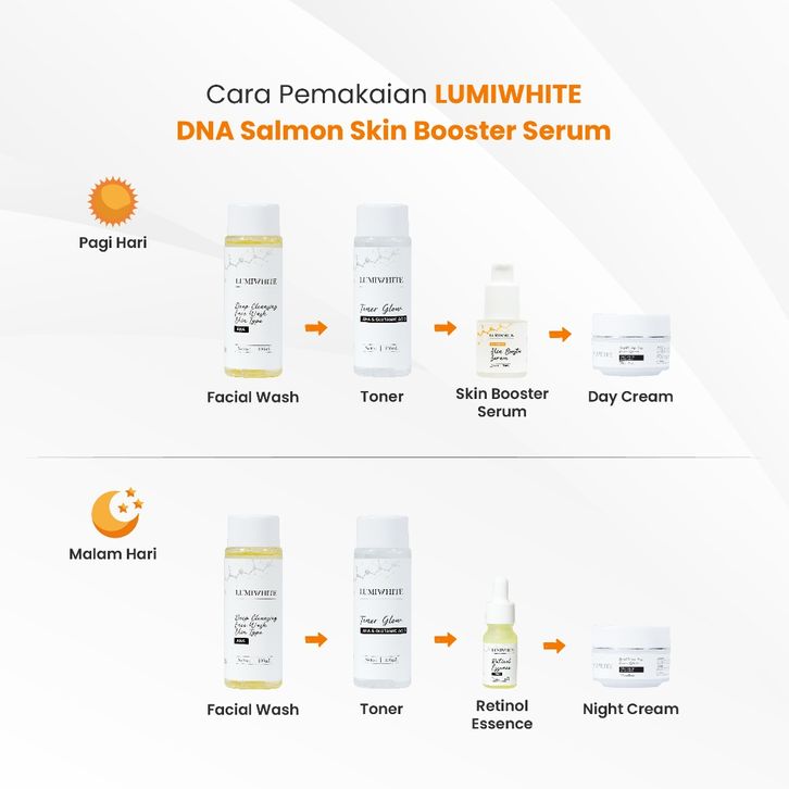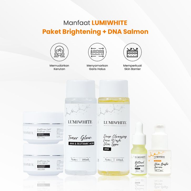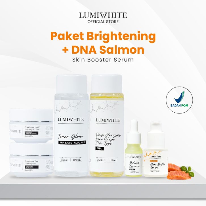 LUMIWHITE PAKET BRIGHTENING + SERUM DNA SALMON [ FACEWASH + TONER + DAY CREAM + NIGHT CREAM + RETINOL ESSENSE + SERUM DN