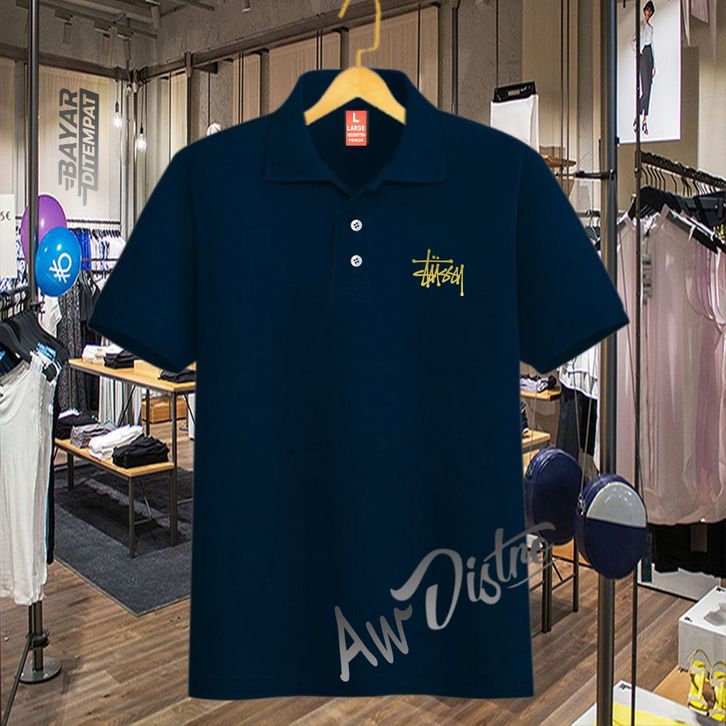 Baju Distro Polo Kerah Stussy Logo Gold Premium Quality Atasan Pria Wanita Promo Termurah
