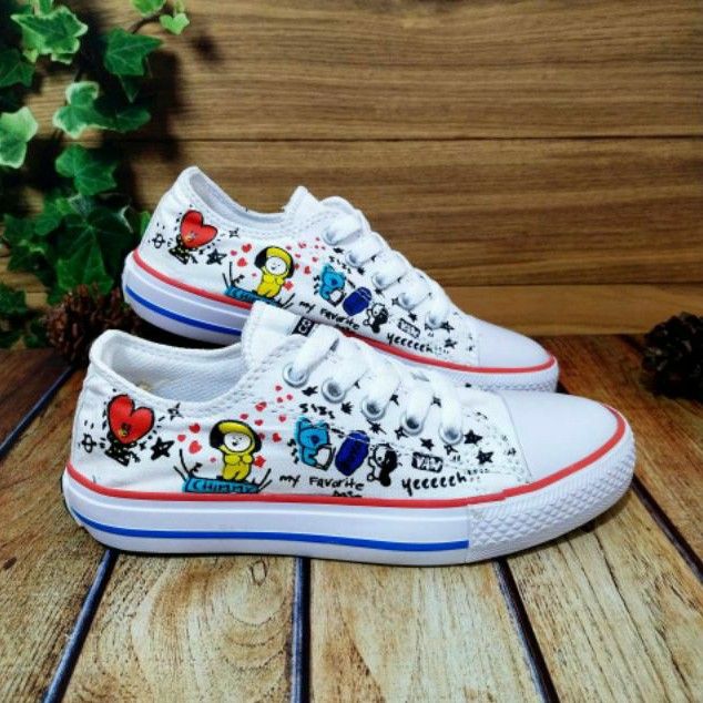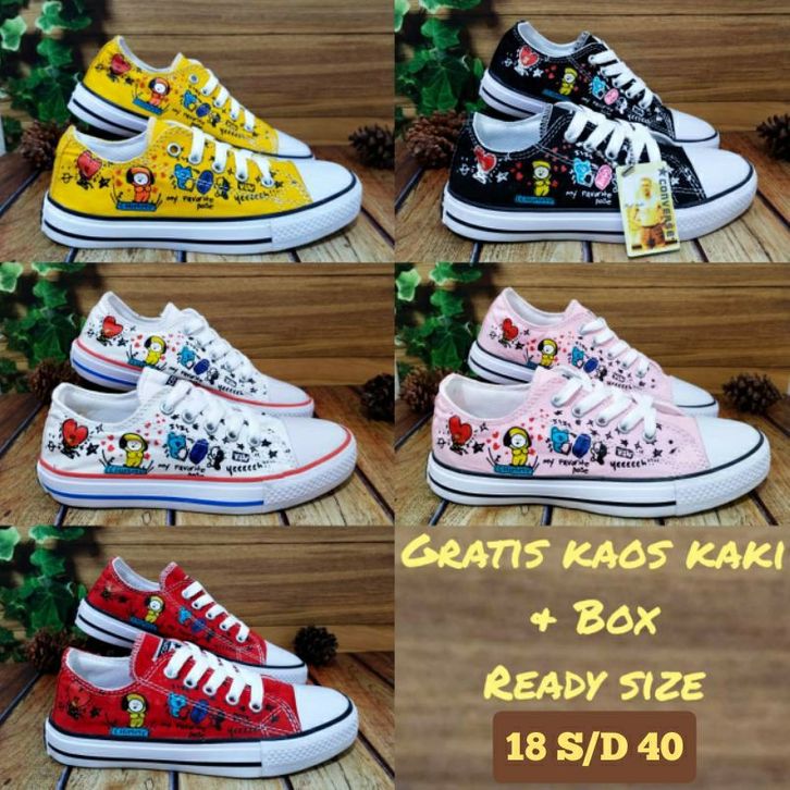 (READY 5 WARNA) SEPATU CONVERSE BTS BT21 SEPATU ANAK PEREMPUAN & LAKI SEPATU SEKOLAH MOTIF KARAKTER