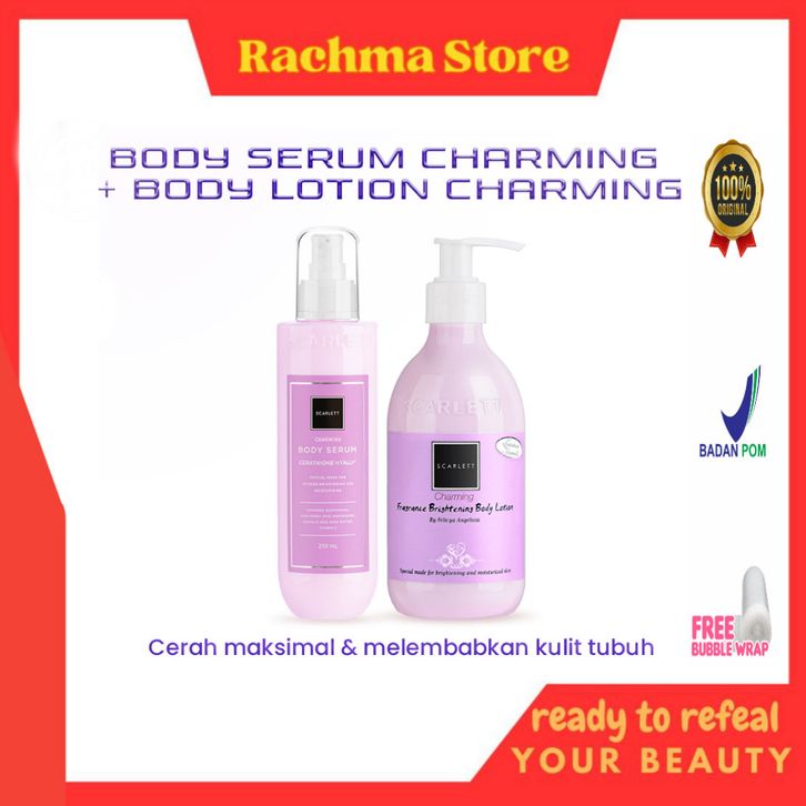 Scarlett Whitening 1 Paket | Scarlett Whitening Body Serum Charming + Body Lotion Charming | Scarlett Whitening Official