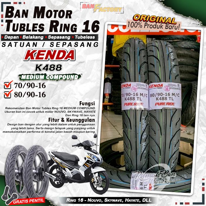 Ban Motor Tubles Depan Belakang Matic Nouvo Skywave Hayate Kenda K488 Ring 16 Tubles Tubeless