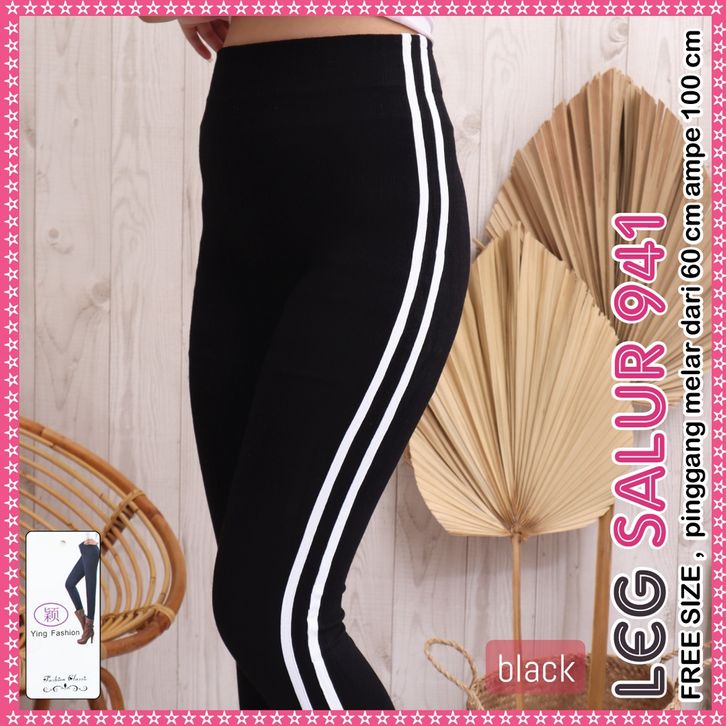 Legging Salur 941 / Leging Salur lis putih samping / Legging jumbo wanita / Legging panjang