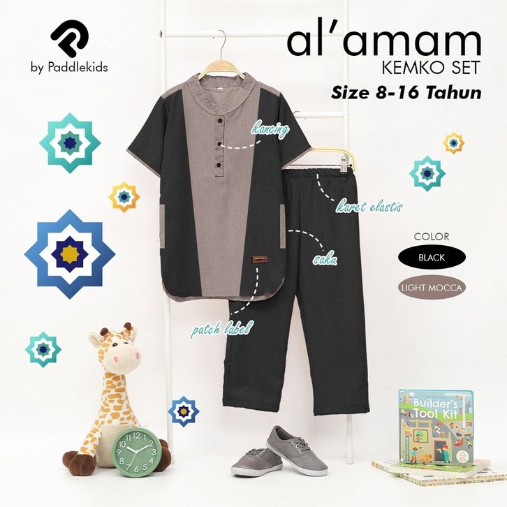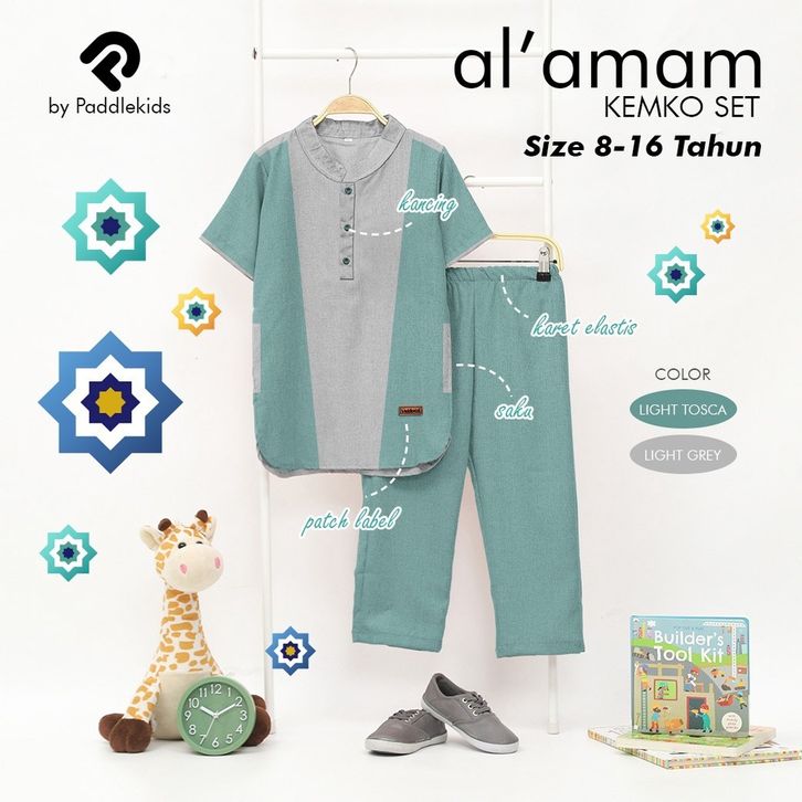 baju setelan Koko anak laki laki al'amam lengan pendek usia 8-16 tahun new