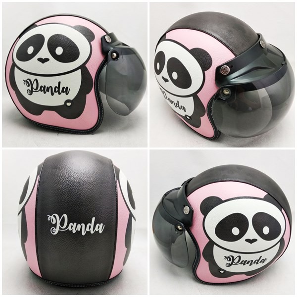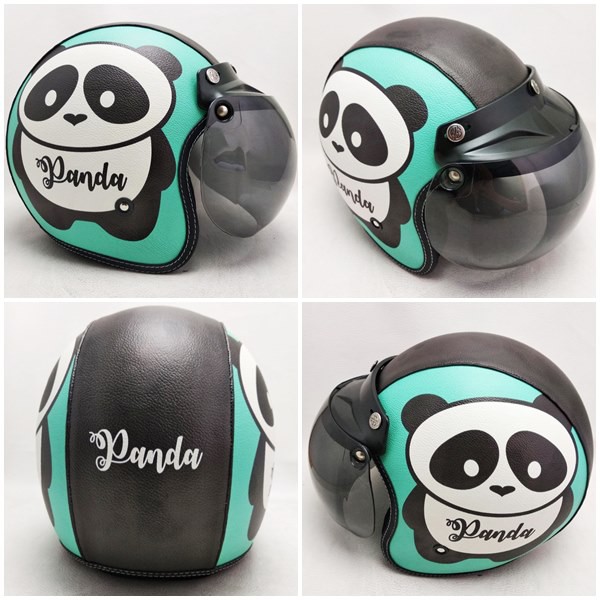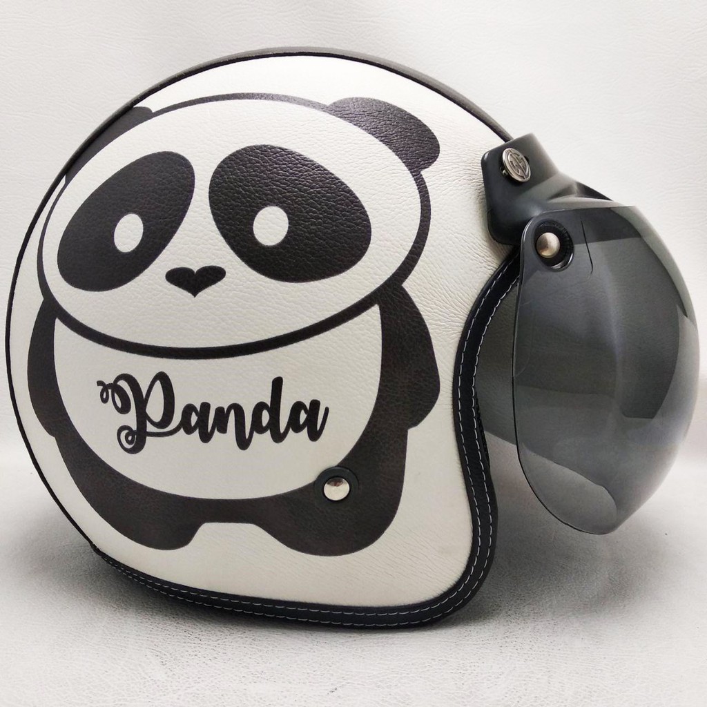 HELM RETRO BOGO KULIT MOTIF CUTE PANDA KLASIK KACA BUBBLE HALFFACE