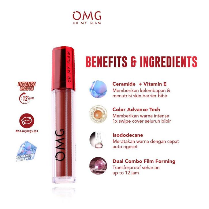 [Star] OMG OH MY GLAM Mattelast Lip Cream 2.9 g - Lip Cream Matte Dengan Warna Intense, Tahan Lama & Ringan