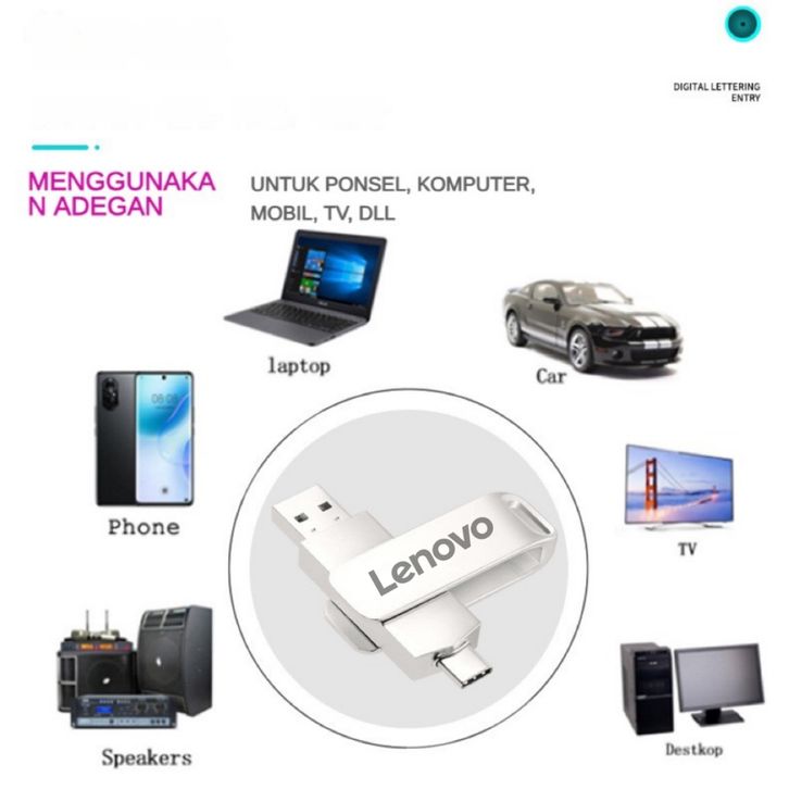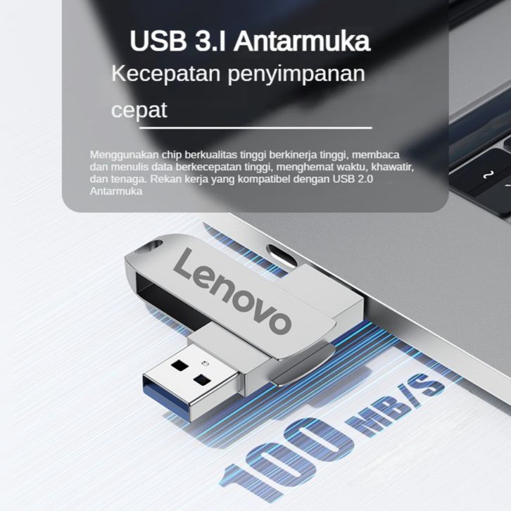 2TB/Lenovo Flashdisk 3 in 1 type c 1TB 3.0 usb High Speed 2TB 1TB 512GB 256GB Anti Air Untuk Komputer