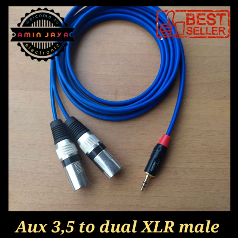 KABEL AUX 3,5 MM MINI STEREO TO DUAL XLR MALE KABEL KITANI 1 SAMPAI 5 METER