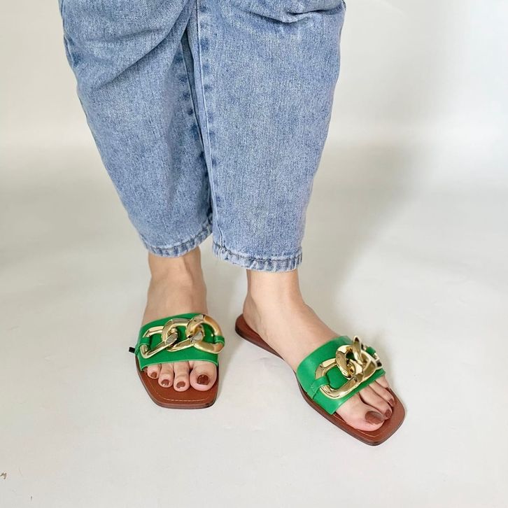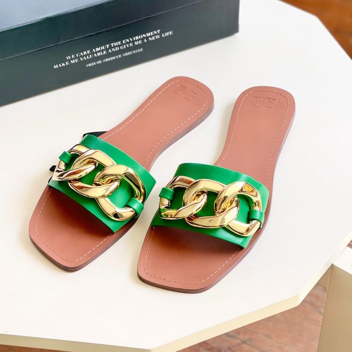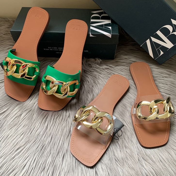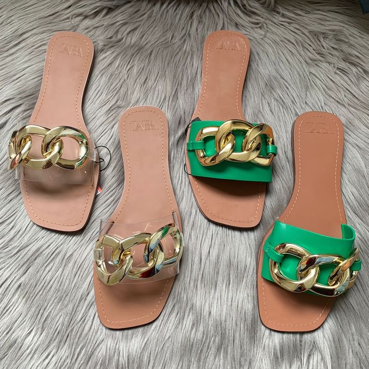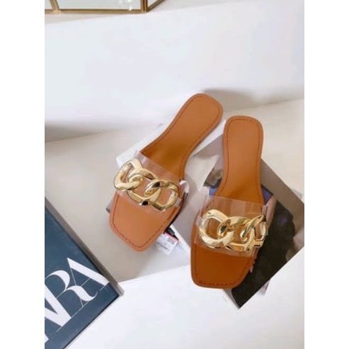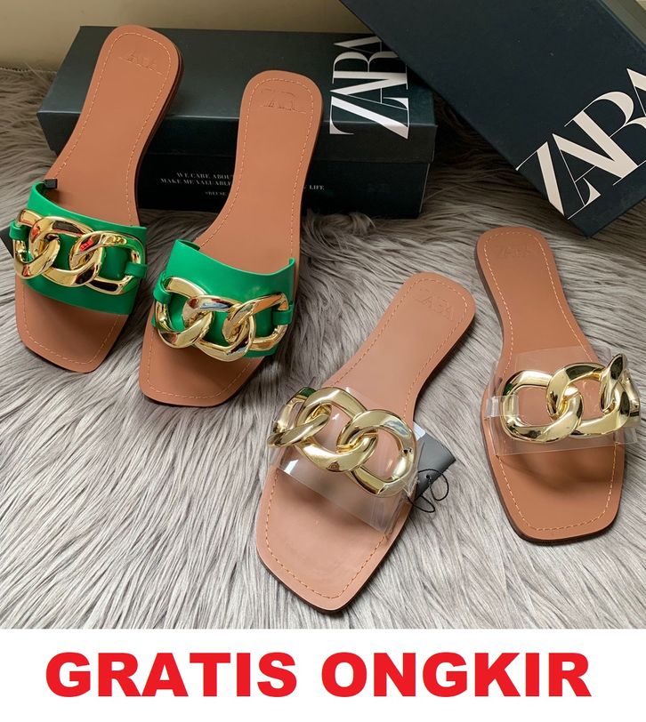 SANDAL WANITA S3510 ZARA FLAT SANDALS WITH METAL CHAIN DETAIL