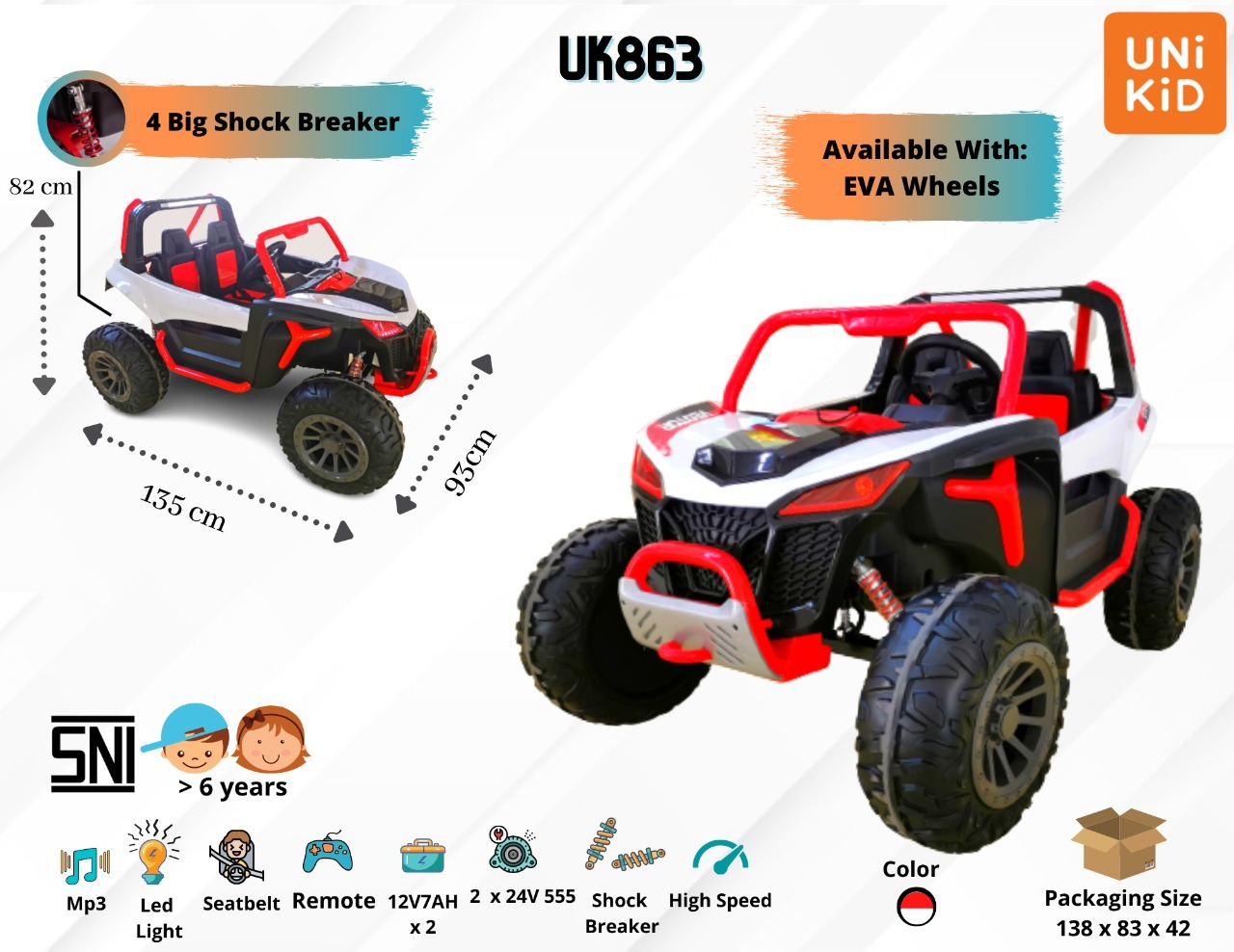(FREE ONGKIR) Mainan anak mobil aki Jeep Big Shock Breaker UNIKID (UK863)