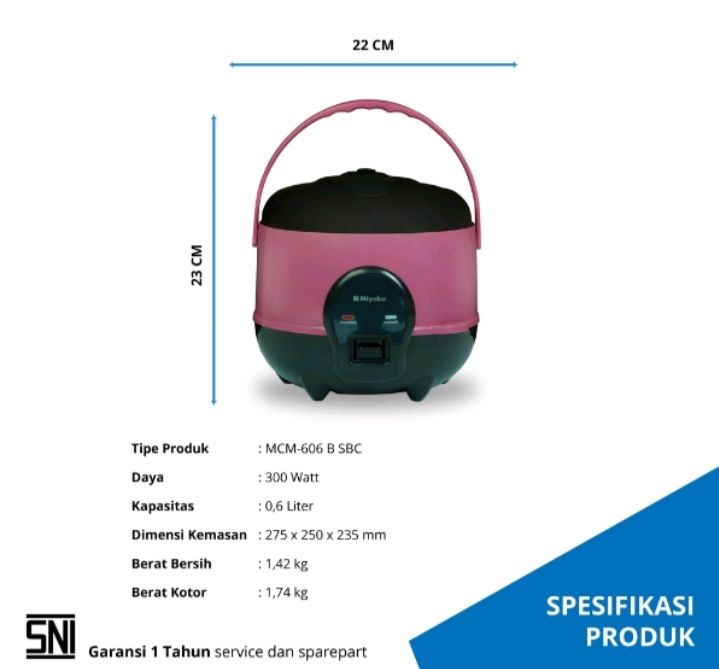 (GRATIS ONGKIR) MIYAKO RICE COOKER / MAGIC COM MCM606 / MCM 606 / MCM-606 (0,6 LITER) GARANSI RESMI