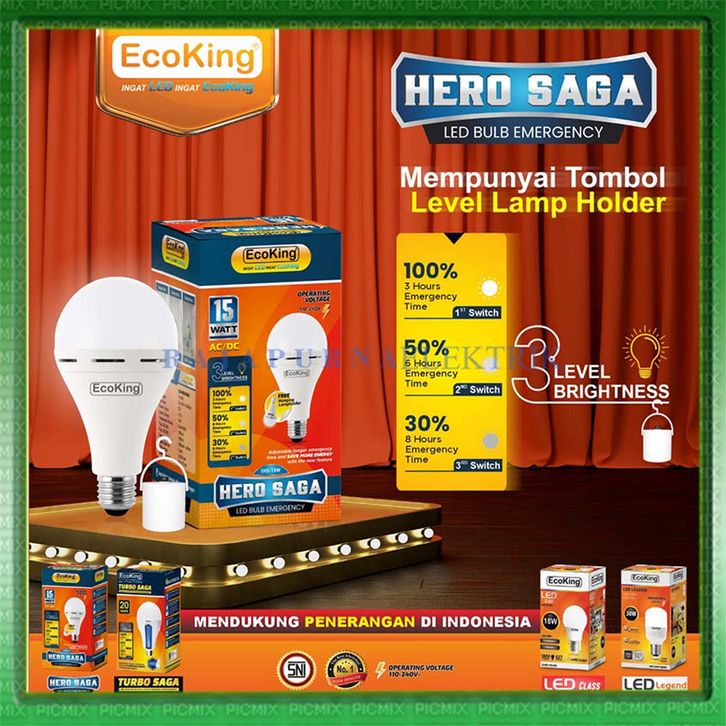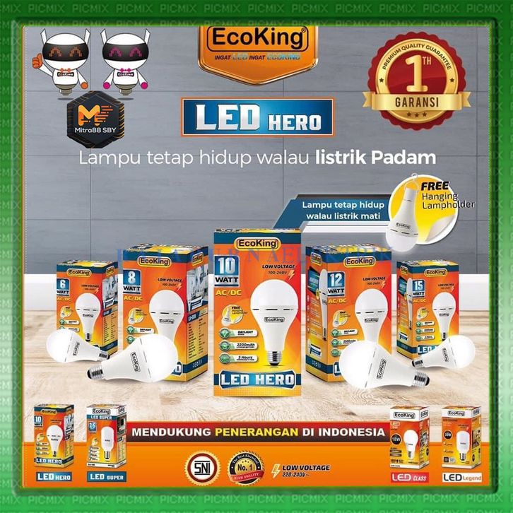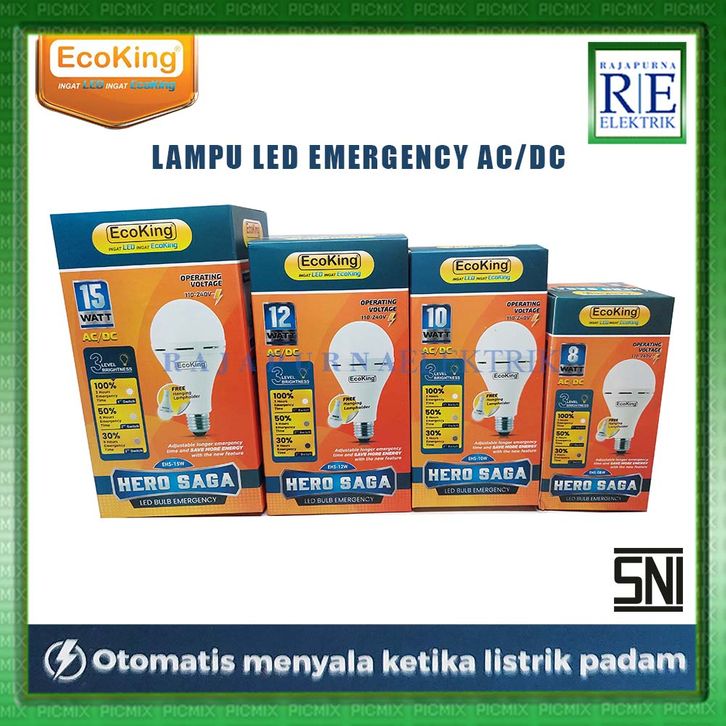 LAMPU LED EMERGENCY MAGIC ECOKING HERO SAGA 6W 8W 10W 12W 15W AC DC