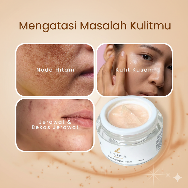 Night Cream Leika Skincare BPOM Krim Malam Pemutih wajah pria ampuh pemutih wajah berminyak berjerawat krim flek hitam