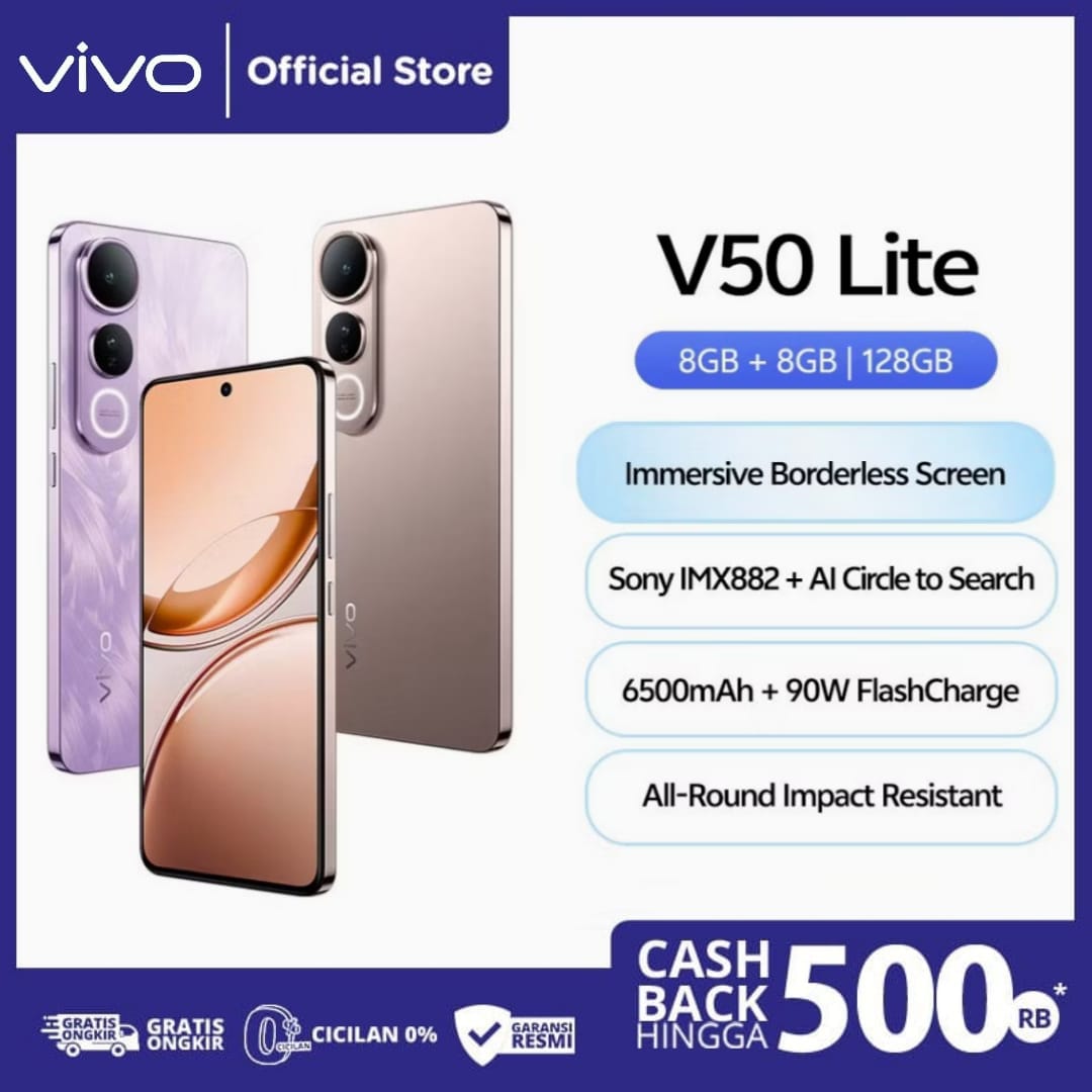 Vivo V50 Lite 4G 8/128GB Garansi Resmi Vivo V40 Lite Vivo V50 Lite Vivo Y400 Vivo Y19sGT Vivo Y04 Vivo V50 Vivo Y19s Pro