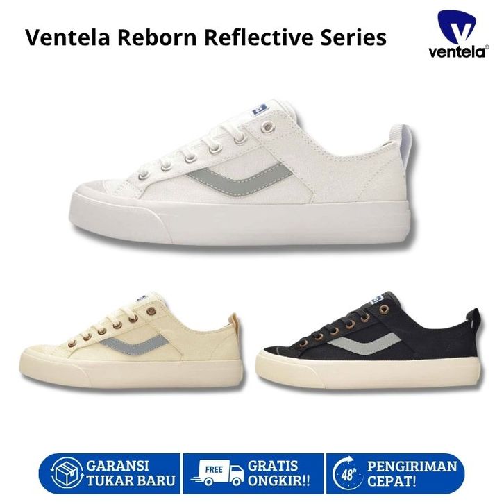 SEPATU VENTELA REBORN REFLECTIVE LOW WHITE LOW CREAM LOW BLACK SEPATU SNEAKERS PRIA WANITA GRATIS ONGKIR