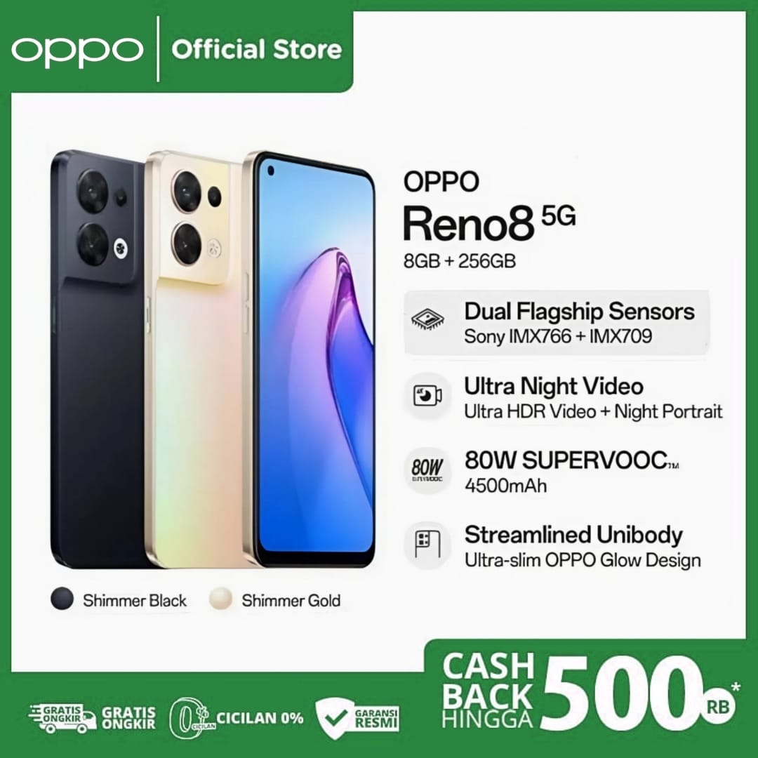 Oppo Reno 8 5G 12/256GB Garansi Resmi / Oppo Reno 8 / Oppo Reno 7 5G / Reno 8 / Reno 8 5G / Reno 8z / Reno 8T / Reno 7z