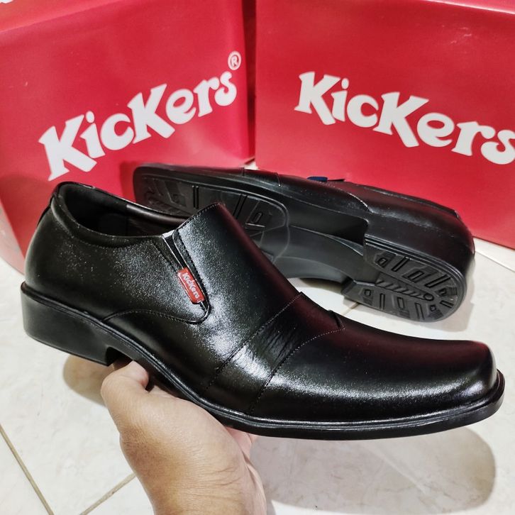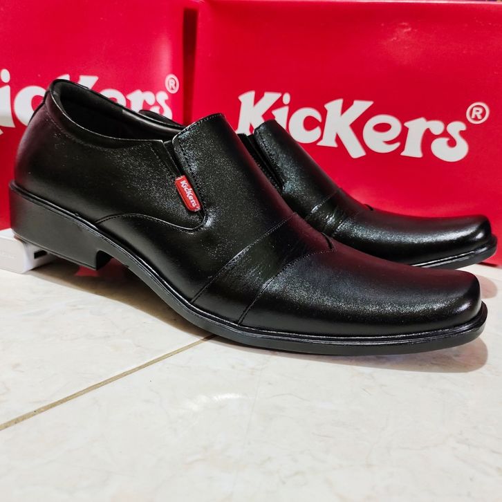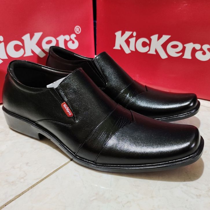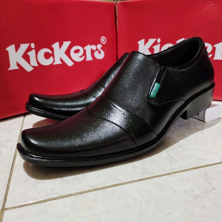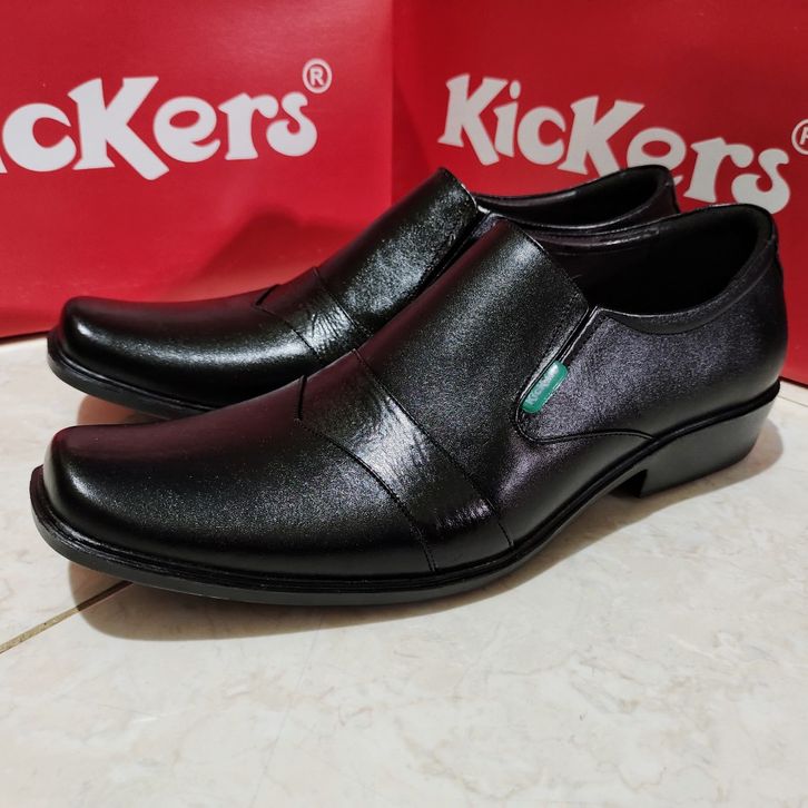 Sepatu Pantofel Pria Bahan Kulit Asli Elegan Kickers Warna HITAM