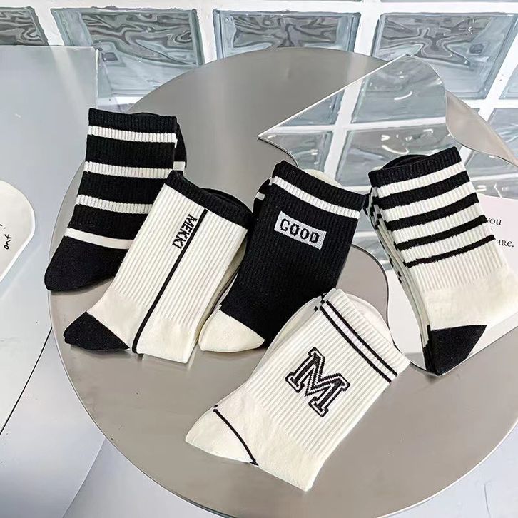 Kaos Kaki Panjang Motif Garis Hitam Putih Kaus Kaki Olahraga Atas Mata Kaki Unisex