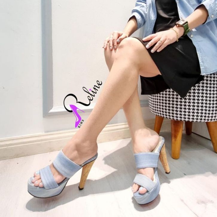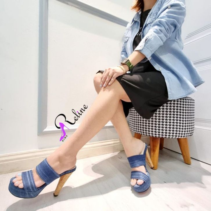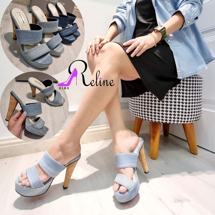 FREE ONGKIR SANDAL HEELS JEANS DENIM RELINE 3021 11CM SENDAL HAK WANITA