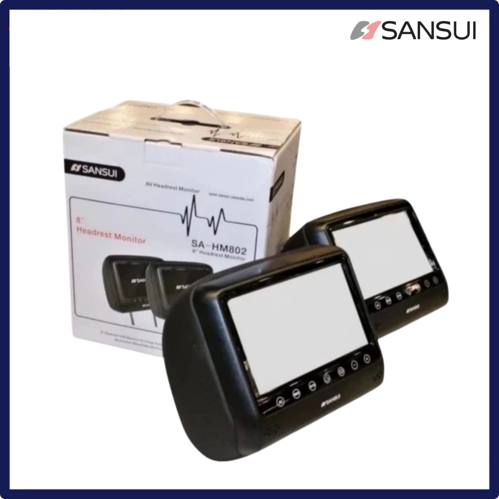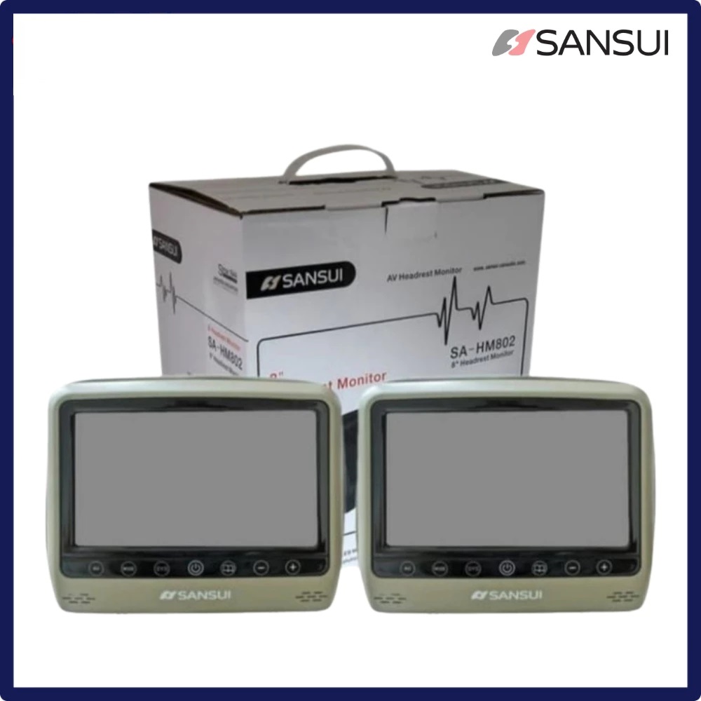ORIGINAL HEADREST SANSUI 8 INCH SA-HM802 WARNA HITAM DAN CREAM PNP TV HEADREST ORI SANSUI 1 SET HIGH QUALITY STOCK READY