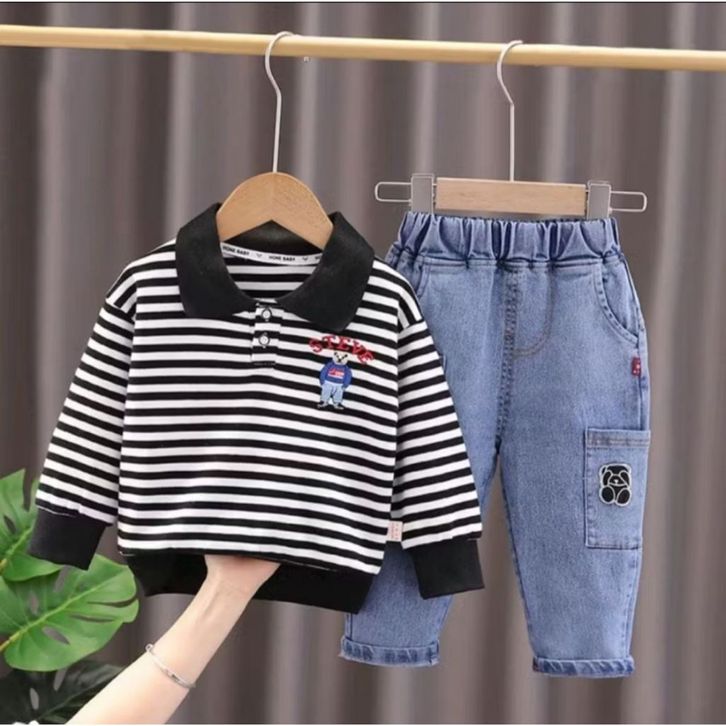 Setelan kemeja anak laki laki premium usia 1 tahun 2 tahun 3 tahun 4 tahun 5 tahun stelan celana jeans panjang cowok
