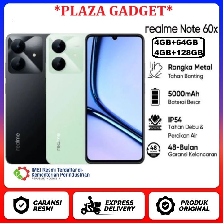 Realme Note 60x 4G 4/64GB+4/128GB Rangka Metal Tahan Banting | Baterai Besar 5000mAh | Tahan Debu dan Percikan Air