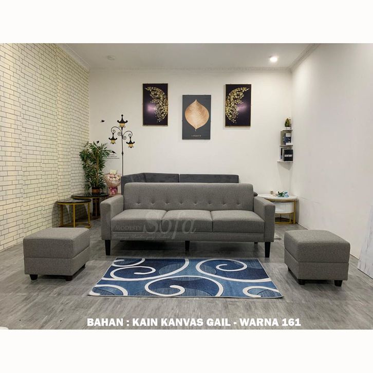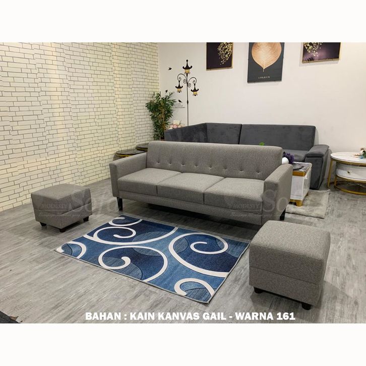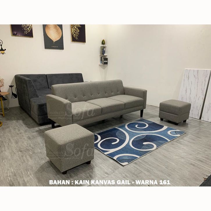 Sofa Ruang Tamu Modesty 3 Seater + 2 Puff Kotak Calleya