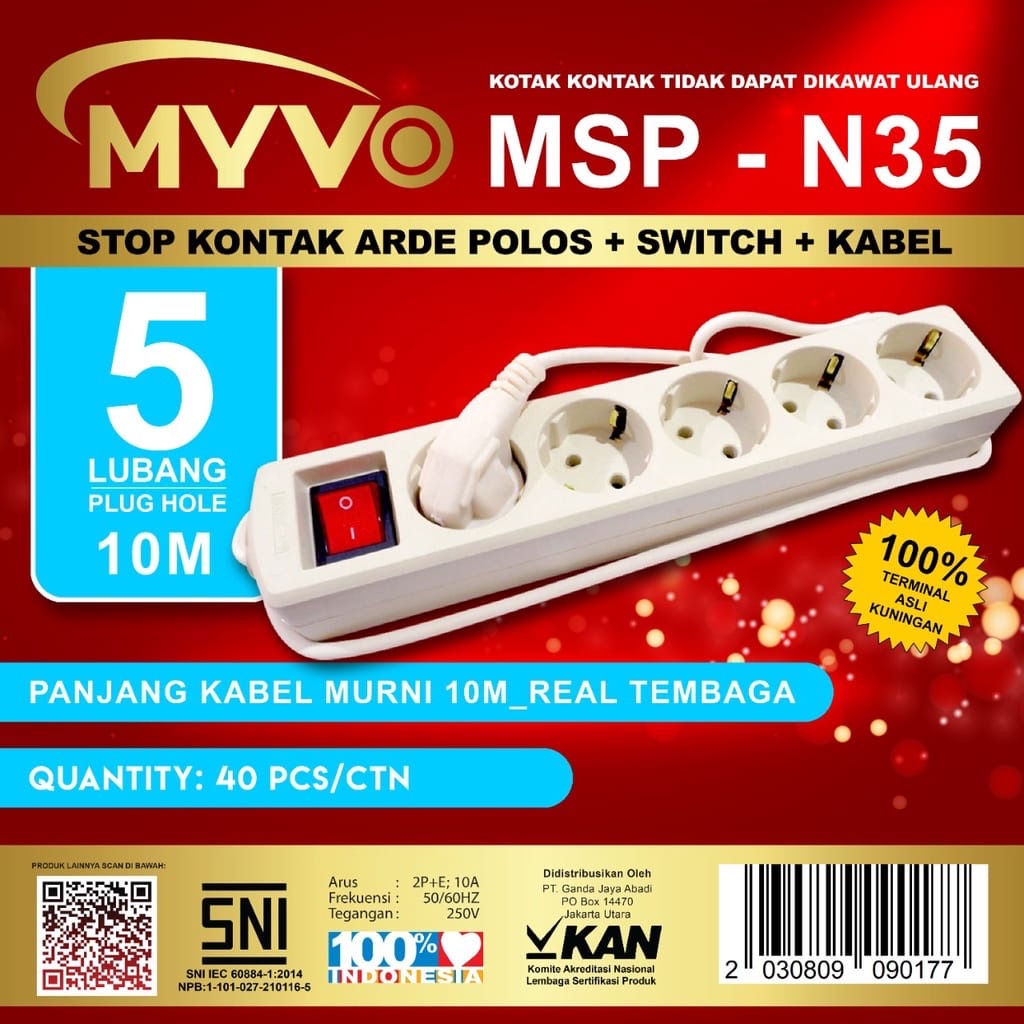 STOP KONTAK KABEL 10 METER 10M 3 LUBANG 4 LUBANG 5 LUBANG MYVO SNI