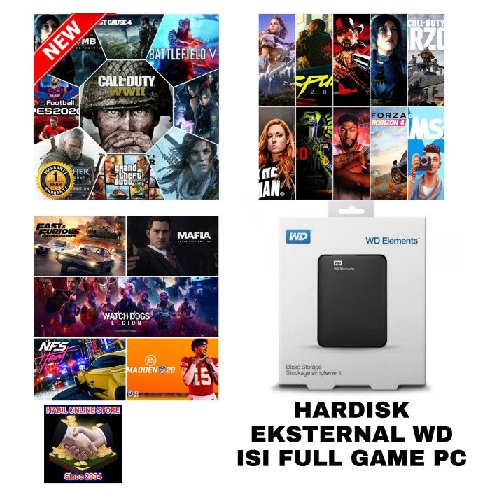 Hardisk Eksternal WD Elements USB 3.0 1TB 500GB ISI FULL GAME PC