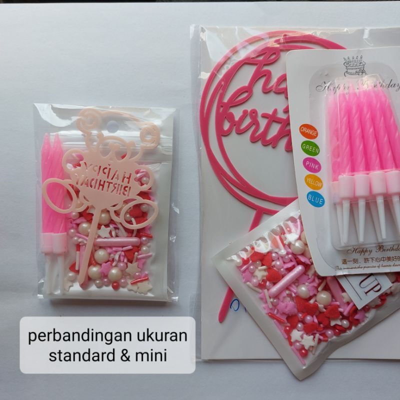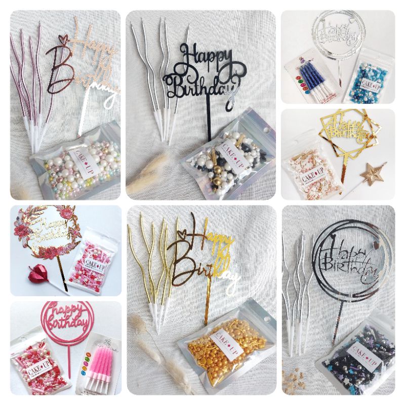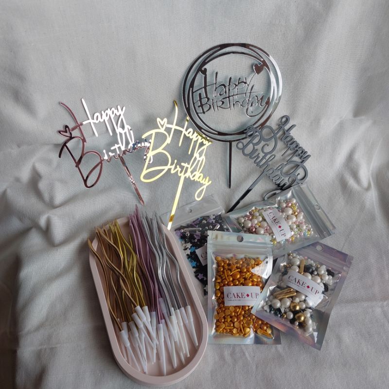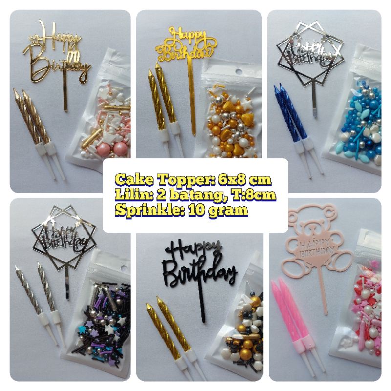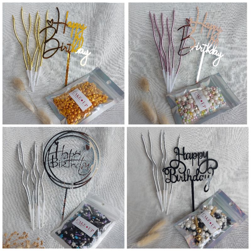 PAKET HIASAN KUE ULANG TAHUN CAKE TOPPER LILIN SPRINKLE HAPPY BIRTHDAY KUE ULTAH