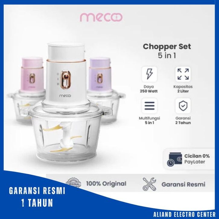 Chopper Mecoo 5 in 1 Mixer & Blender Chopper | Aesthetic Antibacterial Odorless | 250W Low Watt White
