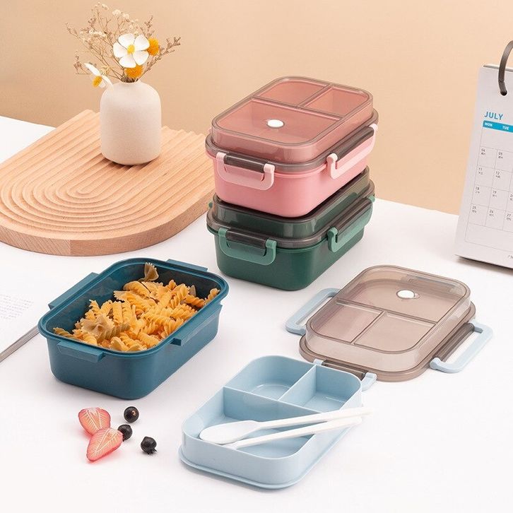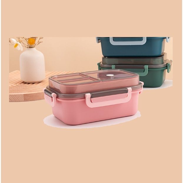 Tempat Makan Set 2 Tingkat 3 Sekat Anti Tumpah / Lunch Box Susun Free Sendok Garpu Portable / Kotak Bento Tingkat Set BP