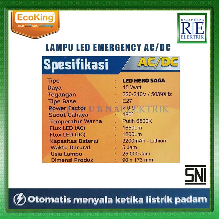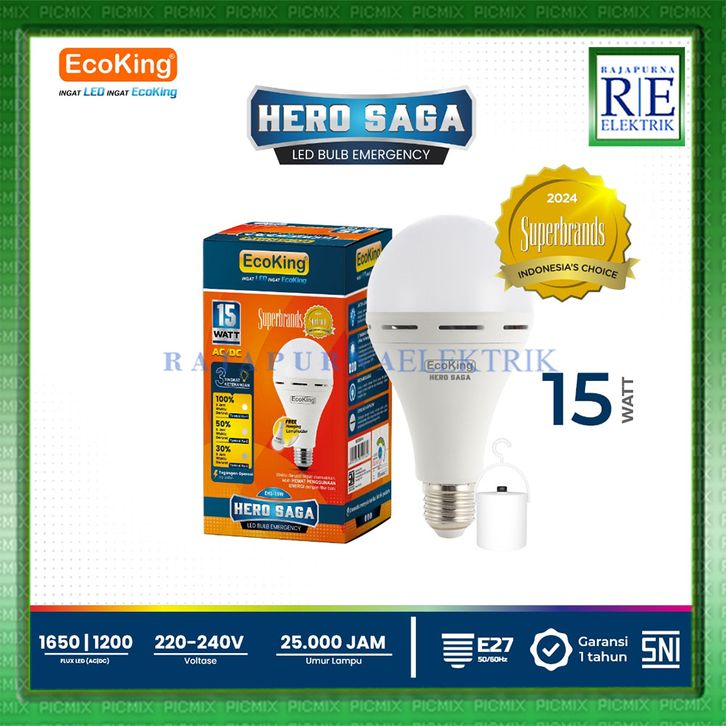 LAMPU LED EMERGENCY MAGIC ECOKING HERO SAGA 15W AC DC ORIGINAL