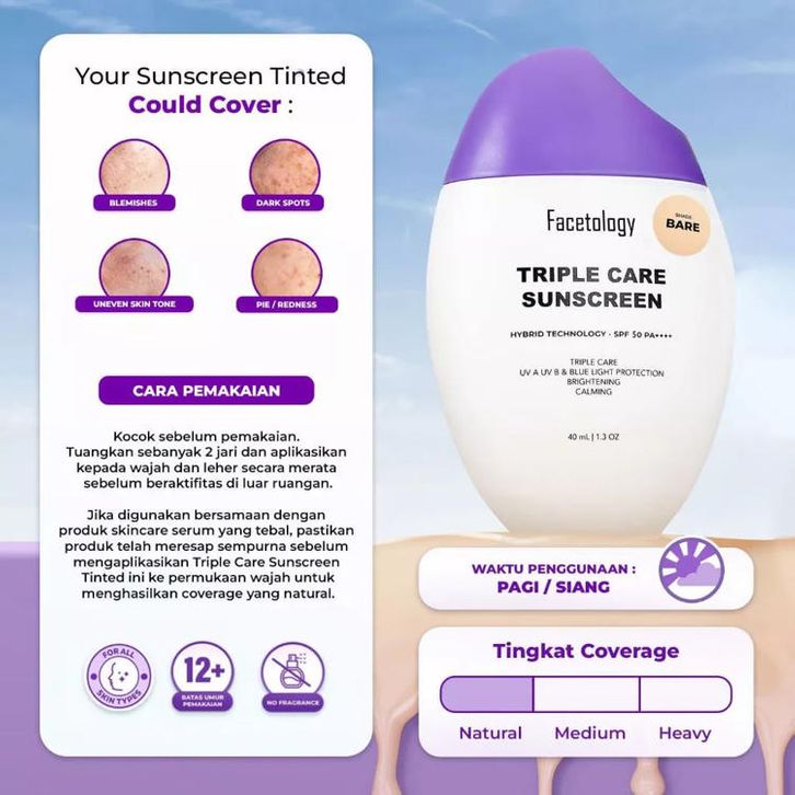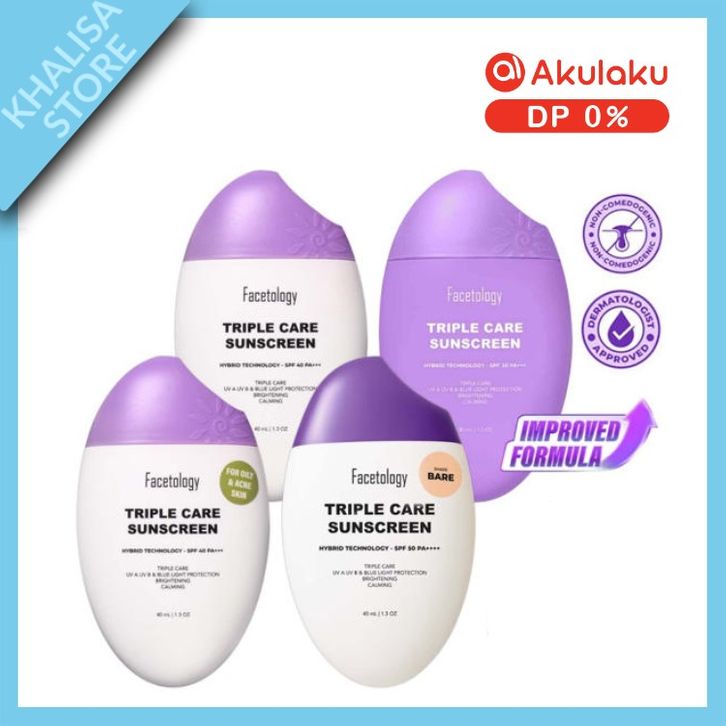 FACETOLOGY TripleCare Sunscreen NORMAL / OILY SPF40 / TINTED SPF50 PA+++ / KHALISA STORE / SKINCARE MAKEUP ORIGINAL / SE