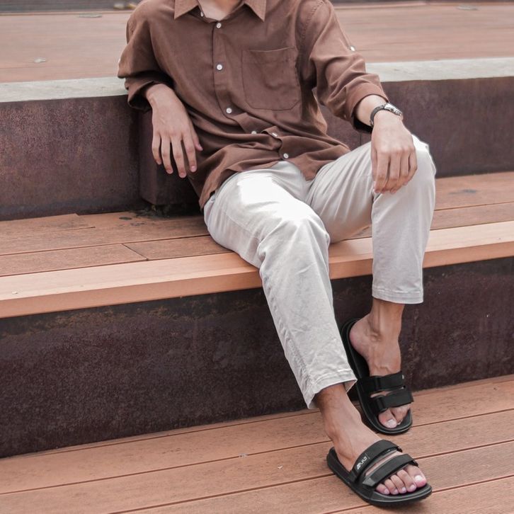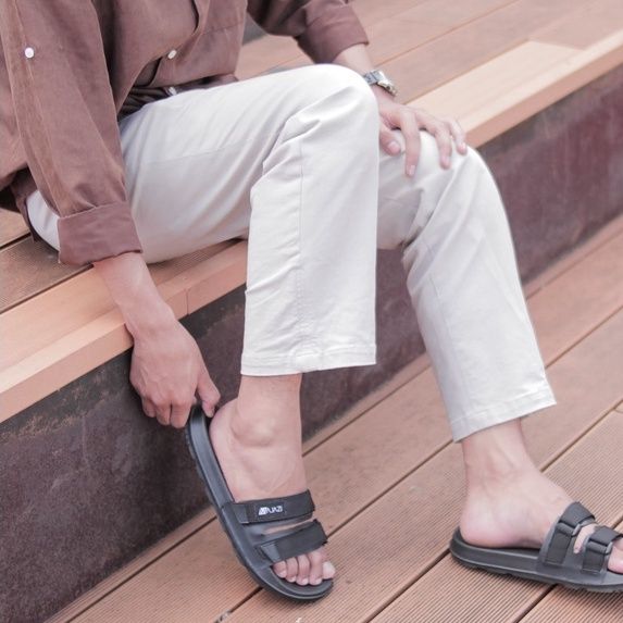 SANDAL PRIA FULL BLACK SANDAL SLOP PRIA SLIDE SLIP ON SENDAL ANTI LICIN RINGAN SANDAL SELOP SENDAL SLIPPERS CASUAL